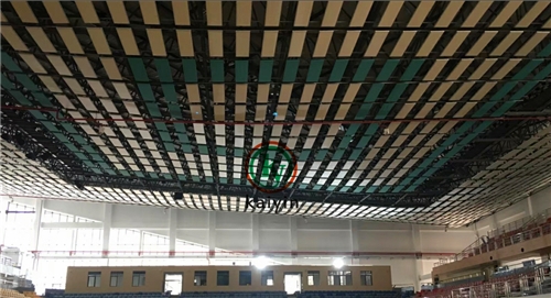 凱音吸聲體是專用于體育館空間吸聲裝飾作用的功能性裝飾材料,是一種分散懸掛于建筑空間上部,用以降低室內噪聲或改善室內音質的吸聲構件。空間吸聲體具有用料少、重量輕、投資省、吸聲效率高、布置靈活、施工方便的特點。